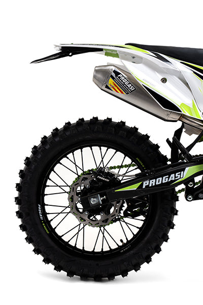 Wheels and Tires: Equipped with sports wheels (21 inches front, 18 inches rear) paired with Kenda tires renowned for their performance in extreme sports. Progasi reinforced aluminum rims prevent tire slippage.