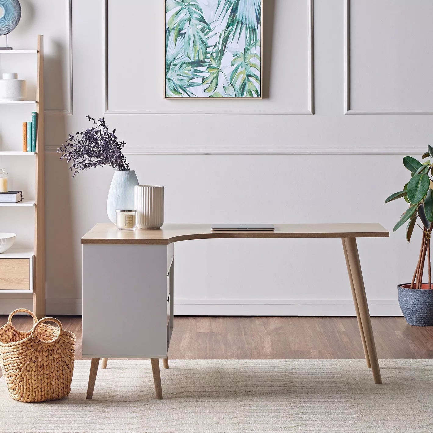 - Refresh your home interiors with this chic corner desk, perfect for modern spaces.