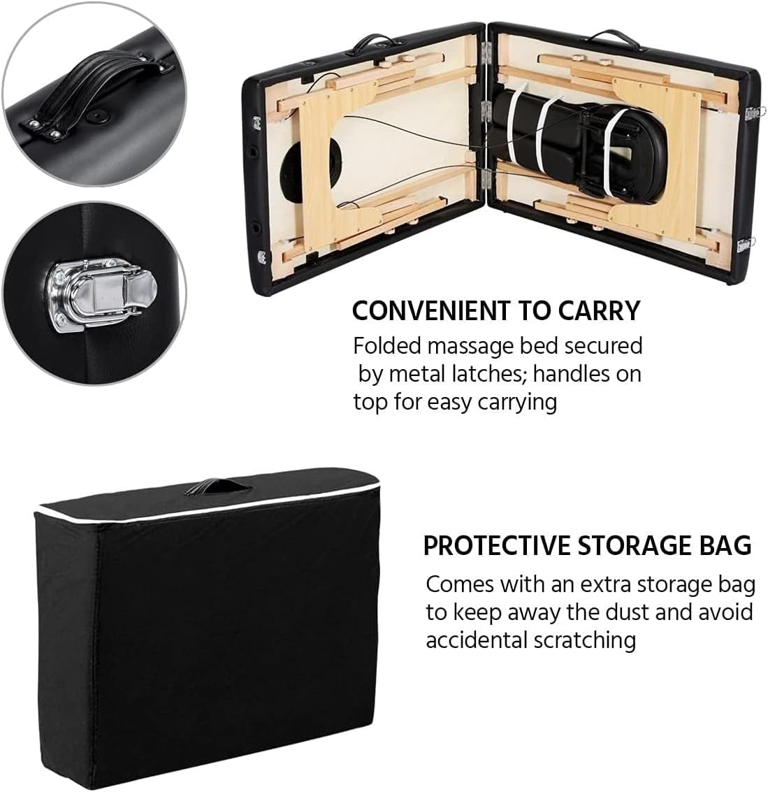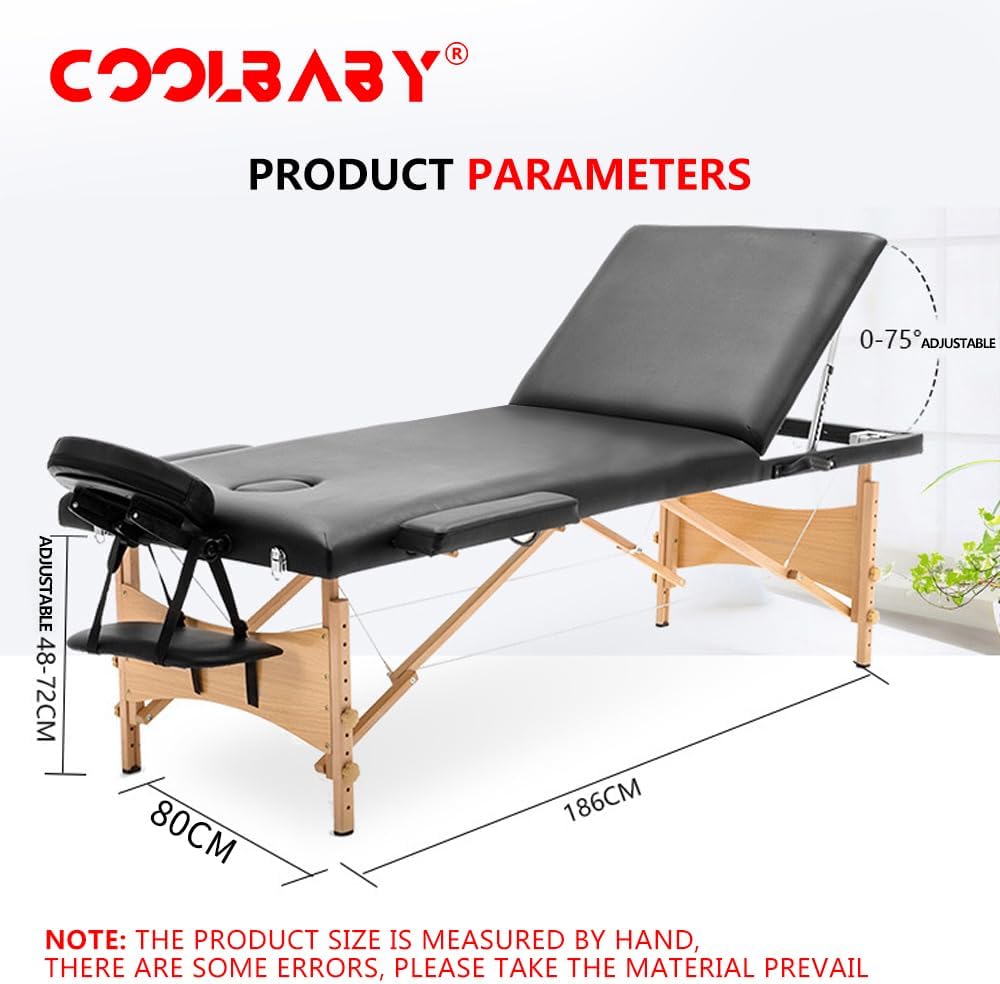 Portable Massage Table Professional Adjustable Folding Bed with 2-part Wooden Frame Ergonomic Headrest and Tote Bag for Therapeutic Tattoo Salon SPA Facial Treatment 80cm wide - COOLBABY