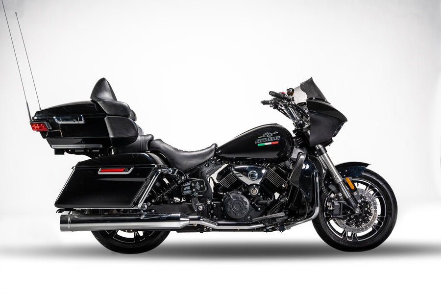 - Design Features: Extended exhaust pipes with chrome finish, ample storage space