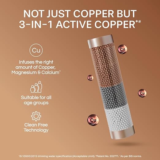 - Patented Active Copper Technology: The Active Copper booster cartridge infuses the right amount of Copper ions into the water. Copper is known to boost the immune system and enhance the taste of water
